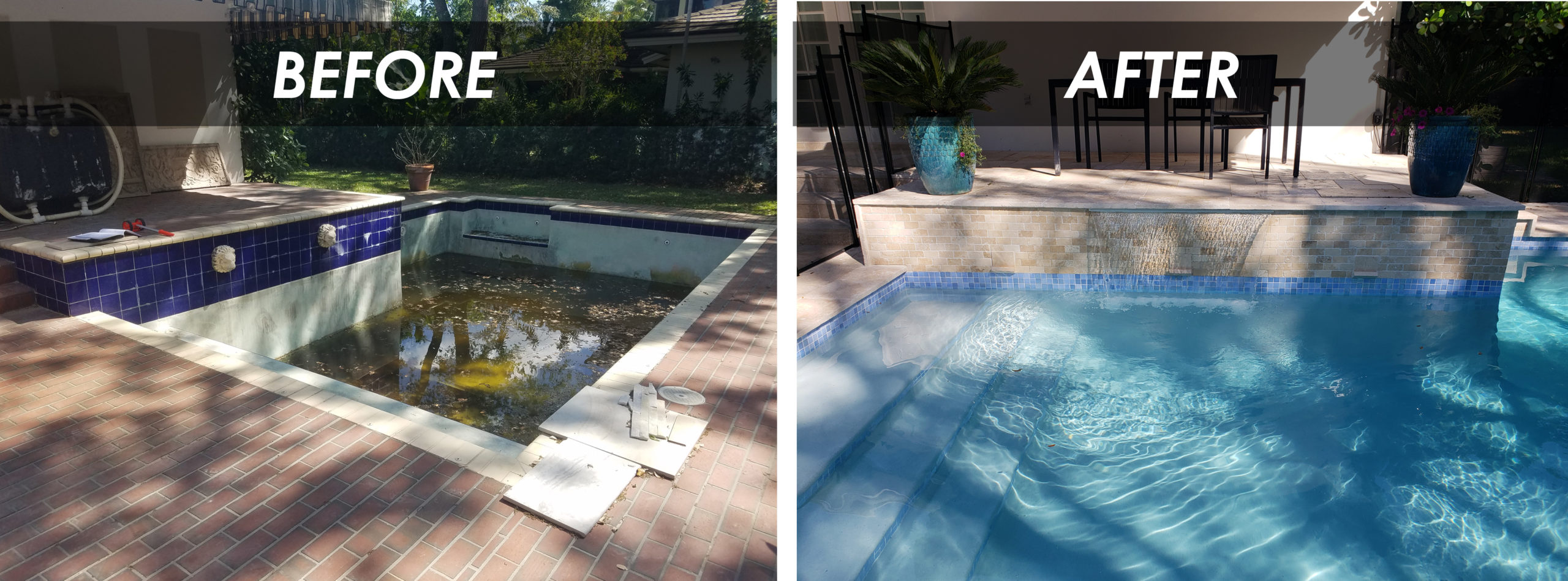 WE TAKE GREAT PRIDE IN OUR ABILITY TO COMPLETELY TRANSFORM AN OLD POOL AND PATIO INTO A BACKYARD PARADISE. YOUR BACKYARD IS AN EXTENSION OF YOUR HOME. IT IS ANOTHER ROOM THAT CAN BE USED FOR GATHERINGS, PARTIES, OR JUST HANGING OUT WITH THE FAMILY ON THE WEEKEND. WHEN THE POOL AND PATIO ARE OLD AND DINGY, NO ONE WANTS TO BE OUT THERE. AS SOON AS RENOVATIONS ARE COMPLETE, YOU WILL FIND A RENEWED LOVE FOR YOUR BACKYARD. IT WILL OPEN UP AN ENTIRELY NEW SPACE FOR YOU AND YOUR FAMILY TO SPEND MORE TIME TOGETHER AT HOME.